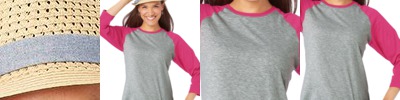 - Two-ply hood with rib trim, contrast color liner and drawcord