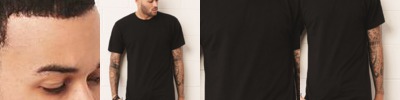 - 5.5 oz., 100% combed ringspun cotton jersey (Heathers 97/3), 22 singles