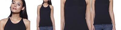 4.3oz., 52% cotton 48% polyester ; 30 singles ; Side seams; retail fit; Tear-away label; High neck line; Cutoff shoulders; Made in a W.R.A.P. certified factory;