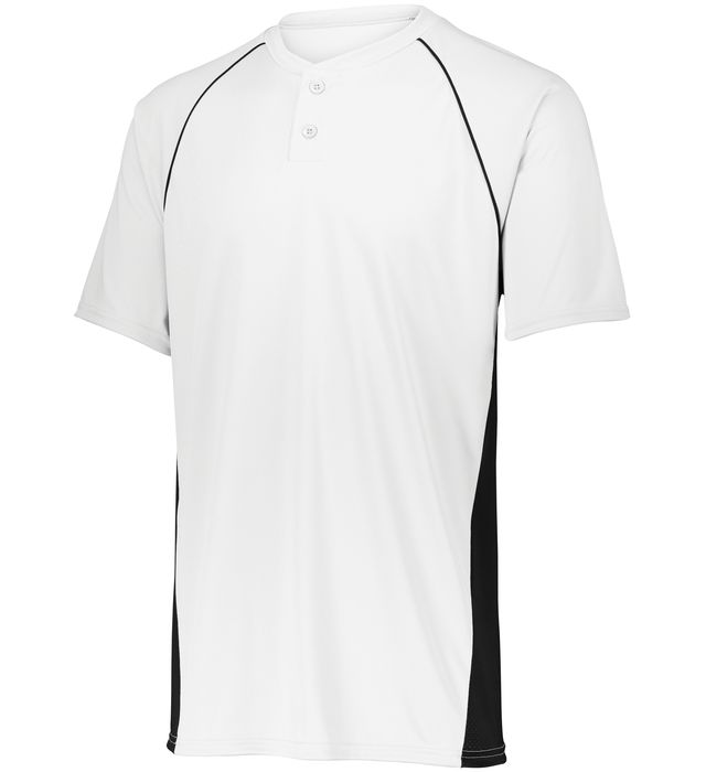 100% polyester wicking smooth knit with color secure(r) technology on front and back panels that helps prevent dye migration * Wicks moisture * Odor resistant * Tag-free label * Two-button placket * Contrast color inserts * Modified raglan sleeves * Longer length