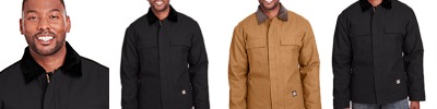10 oz., heavy-duty cotton duck; Heavyweight quilt-lined taffeta liner; Water-repellent finish; Triple-needle stitched main seam; Heavy-duty brass zipper; Three-piece insulated hood with drawstring; Pleated action back; Pleated elbows; Two front patch pockets; Three inside pockets; Manufactured in a LEED (Leadership in Energy and Environmental Design) certified factory;