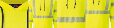 - 360 visibility with front and back 2" flame resistant heat seal silver reflective striping