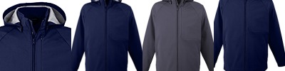 8.5 oz./yd2, 290 gsm ; 95% nylon, 5% spandex taslon bonded to 100% polyester jersey; Water-repellent; Windsmart technology; Center front vislon zipper with autolock slider; Removable hood; Dyed-to-match stretch interlock at cuffs and back hem; Lower front and chest pockets with invisible zippers;