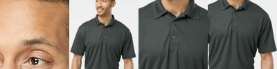 - 87/13 polyester/elastane heathered wicking knit front panel