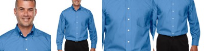 4.1 oz., 60% cotton, 40% polyester; fine yarn count shirting; true Non-iron performance straight from the dryer; Classic Fit for professional appearance; pearlized buttons; patented pucker-free taped seams; specially fused collar, cuffs and placket; split back seam with bias cut back yoke; rolled button-down collar; adjustable "Comfort Collar" for up to an inch of stretch at neck; left-chest pocket;
