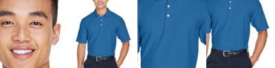 6.1 oz., 100% combed cotton pique with EZCool wicking technology; no-pill, no-fade, no-shrink, no-curl collar, no-wrinkle performance; active fit; two-button placket; side vents;