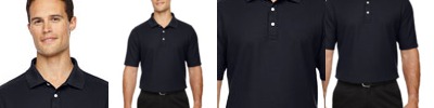 6.1 oz., 100% combed cotton pique with EZCool wicking technology; no-pill, no-fade, no-shrink, no-curl collar, no-wrinkle performance; active fit; three-button placket; left-chest pocket;