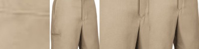 • Heavy-duty brass ratcheting zipper, snap closures on cargo and back pockets