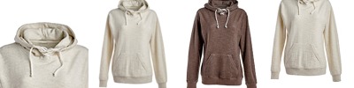 7.3 oz., 60% cotton, 40% polyester mélange fleece; Contrast self-fabric sleeves and hood; 1x1 rib cuffs and waist; Full front zippered placket;