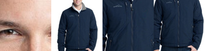 Developed to optimize performance and comfort, this technical soft shell is made with highly waterproof and breathable 10K/10K fabric so that it can take on active sports and perform equally as well as it does in town. Elongated front zippered pockets double as air vents for enhanced breathability when open. 10,000MM fabric water protection rating, 10,000G/M2 fabric breathability rating, interior storm flap, chin guard, reverse coil locking zippers, binding at cuffs, open hem with locking drawcord. Zippered chest pocket, reflective Eddie Bauer logo on left sleeve. Made of 100% polyester knit shell with a durable water-repellent (DWR) finish and bonded to a laminated film insert. 100% polyester microfleece interior.