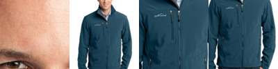 Gear up for the office or weekend adventure in this water-resistant, breathable soft shell that features a subtle crosshatch texture. 3000MM fabric waterproof rating. 3000G/M2 fabric breathability rating. Reverse coil zippers, front zippered pockets, adjustable tab cuffs with hook and loop closures and an open hem. Reverse coil zippered chest pocket, contrast Eddie Bauer logo embroidered on left sleeve. Made of a 100% polyester woven shell bonded to a water-resistant laminated film insert and a 100% polyester fleece lining.