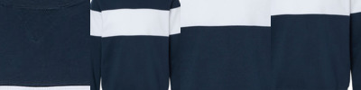 Rib collar, v-notch, cuffs and waistband