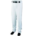 11 ounce 100% polyester double knit * Elastic waistband with tunnel belt loops * Two-snap closure * Zipper fly * Two set-in double welt back pockets (one on youth) * Reinforced knees * Contrast color piping * Relaxed fit - full cut with longer inseam * 35-inch inseam on Adult Large * Graded inseam * Open bottom