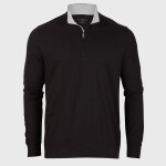 - 1x1 rib knit neckband, placket, sleeve cuff and hem