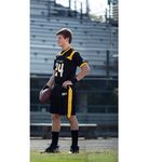 The Phenom6 Flag Football Jersey by Russell Athletic(r) is a standout for amateur league competition or college intramural play. With details like a contrast collar and side inserts and durable performance-fitted construction, this jersey generates professional spirit for amateur play.